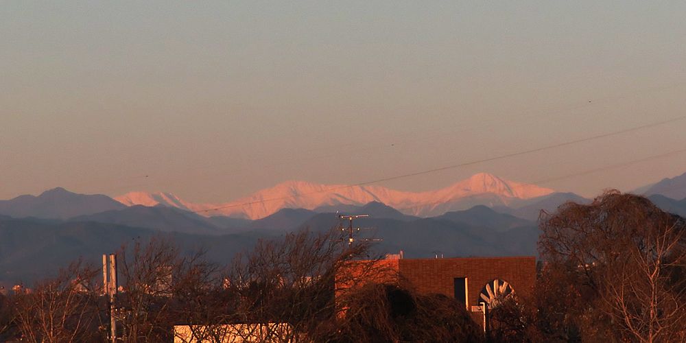 今日の画像は、白峯三山です。昨日の強風で空気中のダストが減り、今朝は低空までクリアーな空だったので、真っ白に雪化粧した峰々が良く見えていました。日の出直後なので、画像は赤みを帯びています。