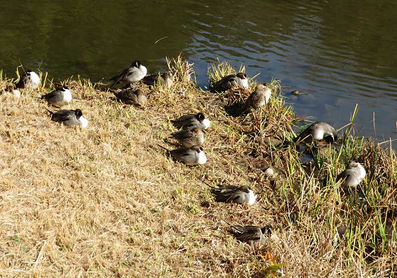 今日の画像は寝ているカモ達です。先週の土曜日に行われたドンド焼きに行った帰りに立ち寄った金澤文庫がある称名寺の池の畔でカモ達が寝ていました。例年は池の中にいるカモ達が、この時は池の畔で昼寝中でした。