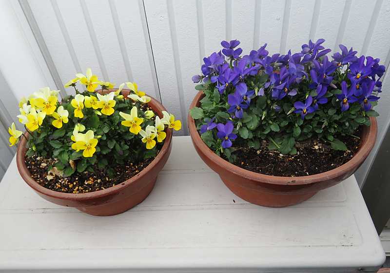 今日の画像は、我が家の黄色と紫の花の鉢植えです。妻が大切に育てており、日当たりの良い良い2階のバルコニーに置いてあります。エアコンの室外機の上に乗せて写しました。