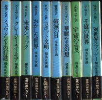 1972年9月から、1973年6月まで計10冊、芳賀書店発行。 出版社の知名度のせいか、ゾッキで出回っていたせいか、あまり評価されていないSFテーマ別アンソロジー叢書。 しかし内容的には福島正実氏編集による、バローズ、C・A・スミスからクラーク、アシモフ、ハインラインまで バラエティに富んだなかなかすばらしい出来で、後に講談社文庫に再録された(全部ではない)のでそちらの方を ご存知の方も多いかも。 ソフトカバーで背表紙は緑色ですが、日焼けしやすく青みがかった色になっている物が多く、昔はよく古本屋の 店頭の均一コーナーで見かけました。