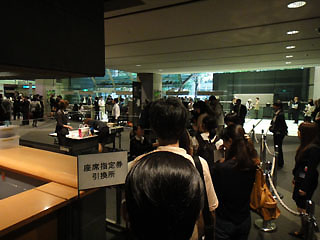 ![]() 完成披露試写会 受付の様子 |