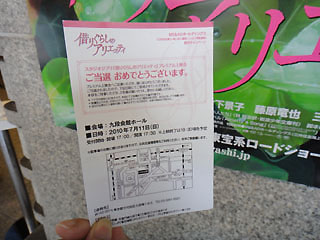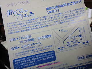 2008年7月11日、東京・九段会館でも「アリエッティ」の試写会が開催された。ここはMS&ADホールディングスの統合キャンペーンによる試写会で、雨模様の天候であるにも関わらず、満席の盛況となった。