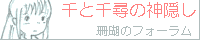 | 珊瑚さんの「千と千尋の神隠し 珊瑚のフォーラム」 「千尋」関連のニュース・お絵かき掲示板・イラストコーナーのほか、人気投票コーナーもあります。特選コーナーがオススメ。 | |