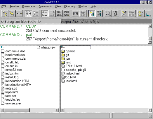 CuteFTPを使うと、ホームページのHTMLファイルが大変簡単に管理できます。