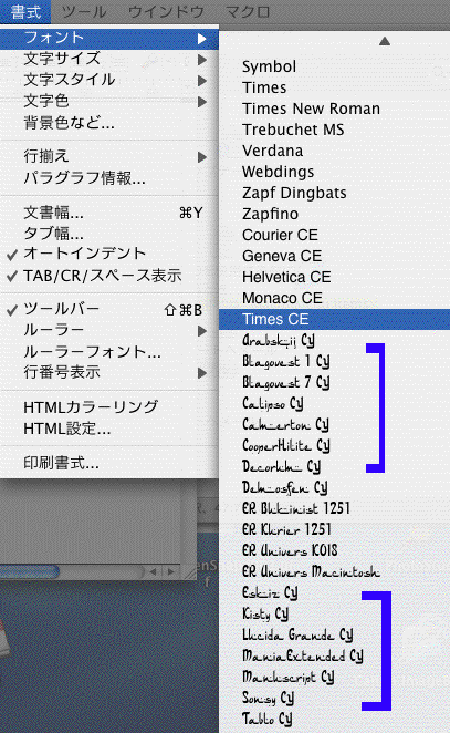 再起動後、フォント・メニューで下図のような選択ができるようになります。(画面例はJedit)