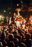 | Другая категория - это храмы, которые принадлежат каждому из микрорайонов города. Обычно люди каждого микрорайона несут свои храмы по очереди. | もう一つは、地域の神輿です。こちらの神輿はそれぞれの地域の人々が担ぎます。 | The other category is for shrines that belongs to each area of the town. Basically the people of the bloc carry their own shrine by turns. |