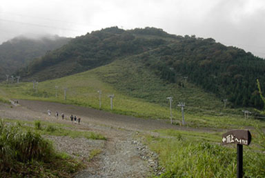 スキー場駐車場は既に50台程。さすがに百名山、人気の山だ。第二駐車場に駐める。