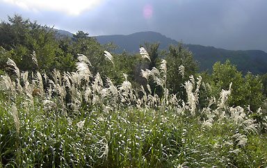 ススキ (後は小荒島の稜線)