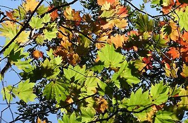 出現。段々目も慣れてきて、少々の大きさでは驚かなくなってきた。ハウチワカエデが朱に黄に葉を広げる。
