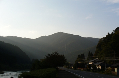 朝靄残る半国山の麓を過ぎ、四ッ谷へ入る。靄かかる。夜じゃないけど山家夜雨の雰囲気。
