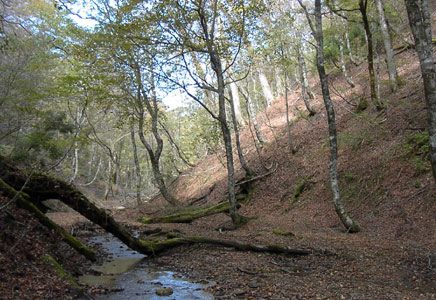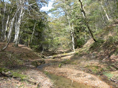 ない谷です。それでも傾斜が緩やかになった所で谷も広くなり、広葉樹が少し