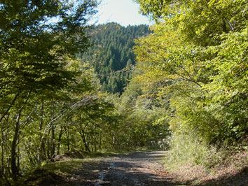 中山神社との分岐を右に採り、枕谷に入る。おぉ、ますますいい感じの森。