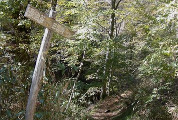 ルートと北のルート、そして生杉ブナ林 駐車場方面への東。北から野田畑峠へ