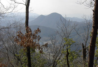 【愛宕山】 さて、ここから愛宕山を目指す。前衛峰が藪の上に顔を出している。