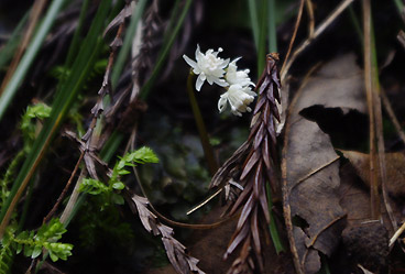 そうだ、そろそろ春の花も顔を出しているかもしれない。崖を見ていたら、ありました。セリバオウレンの清楚な白。