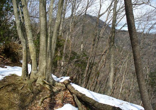 今は冬枯れのため比較的どこからでも望むことができた。先週下りた谷も見えたきた。