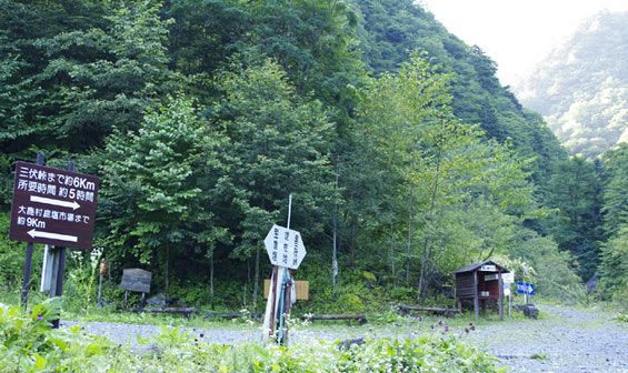5時半起床。昨晩の駐車場へ向かう。夜の間に先客1台が駐まっていた。塩川小屋はさらに先だが、落石で通行止め。