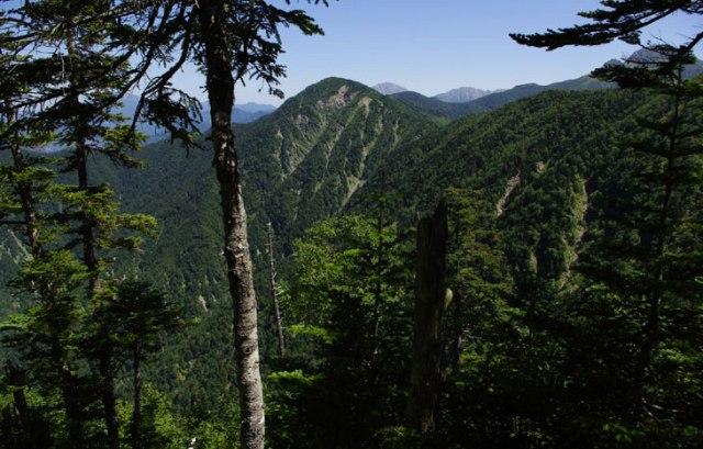 その後は険しい尾根を淡々と登っていくしかない。木の間から中央アルプスが見える。