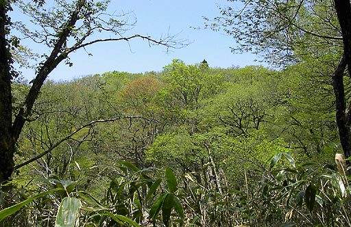 見える。足下の斜面には若いアセビがはびこっていた。約960mの肩まで登るとブナ林も立派になり、
