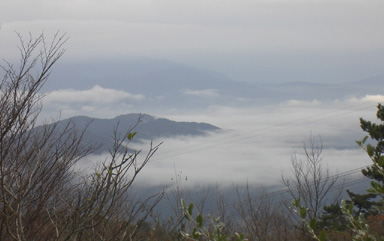 一面の雲海。半国山の中腹にも浮かんでいる。車を停めて望外の風景にしばし見とれる。