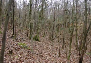 山頂南東の雑木林(10:15-10:40)〜ハイキング道に合流(10:41)〜金輪寺 着(11:20)