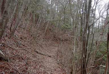 辿ってみる。落ち葉の斜面になじんできて風化していく最中のような古い道である。