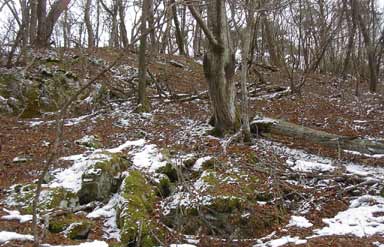 山頂西面を行きます。葉が落ちて見通しがききどこでも歩けます。快適です。そうそう