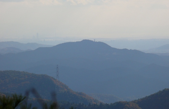 深山がみえる。日が射して暖かい。この景色を見ながら昼食。無線をつけるが時間が遅くて