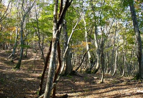 最高潮。ブナも出てきました。若丹尾根の真骨頂というべきでしょう。作業道と暗い山道を