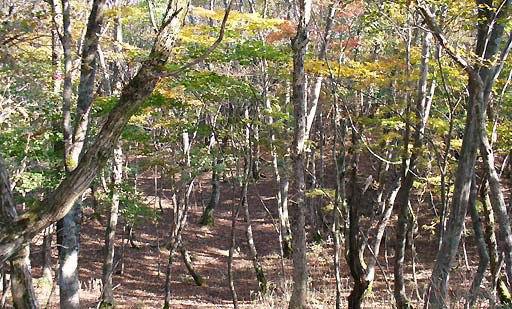 よりも良いかもしれない。さらに登るといよいよ落ち葉だけの素晴らしい林。谷は緩やかに