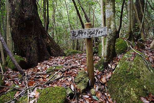 次第に道は荒れて薄暗くなる。植林の中に入るが苔むした大岩が多い。もう一度沢を渡り、落ち葉道を登っていく。