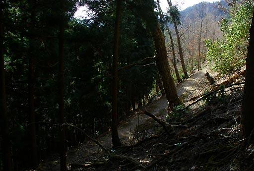 地図は波線道。実際は少し怪しい所もあり、植林に入って谷をまたぐところは崩壊していた。道なりに谷を巻くか、