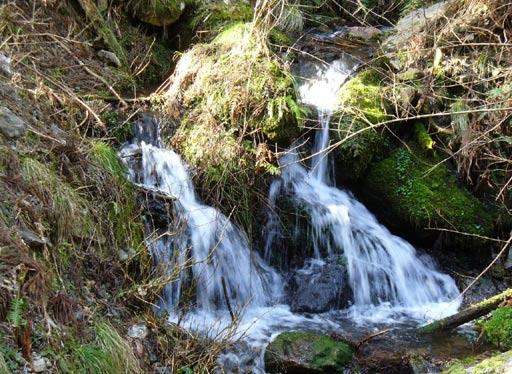 立派に手入れされた杉林の中をくねくねと下りていく。チョロチョロと流れていた沢は、次々と雪解け水を集めて轟々と