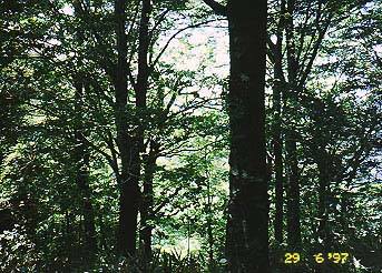 大平頭小屋を過ぎた稜線での ブナ林は涼しかった。 |