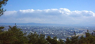 大阪市街越しに生駒山を見る。