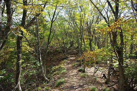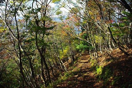 ■目的地:蛇谷ヶ峰(901.7m) <山域:比良・滋賀県高島市・朽木> ■日にち:2008年11月1日(土) ■天気:曇り時々晴れ ■同行者:単独 ■コースタイム: 自宅発(7:50)=名神=湖西道=県道23号=朽木・思い出の森P 着(10:30) 思い出の森P 発Ca280m(10:40)〜林道から山道へ(11:00)〜ふれあいの里からの道に合流Ca560m(11:35)〜 かつらの谷からの道に合流Ca810m(12:30)〜蛇谷ヶ峰山頂(12:45-13:15)〜カツラの谷Ca550m(14:15)〜 ふれあいの里(15:20)〜思い出の森P 着(15:35)