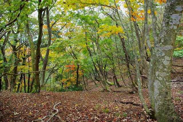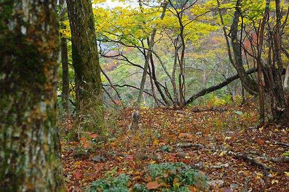 北の谷 植林や荒れかけた急斜面もあったが、色づいた谷が出てきた。