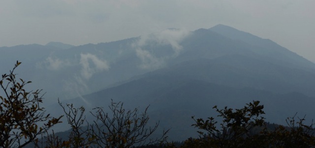 西峰から武奈ヶ岳 反射板を過ぎて南に大きく現れる。