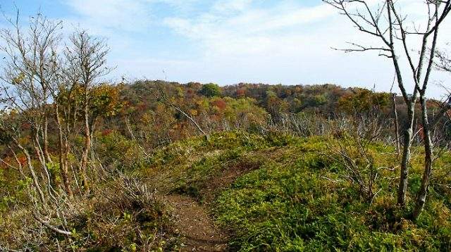 スキー場に出る 周辺もきれいな色。眼下の駐車場までゆるりと下りる。