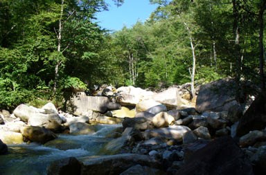 明るい沢沿いを行く