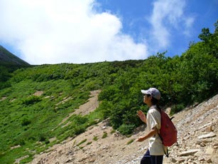 山の神に無事を感謝して、気を抜かずに歩いていきます。