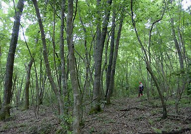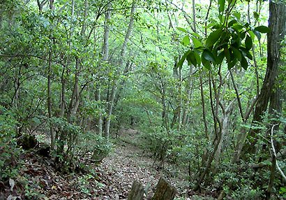 林床は日陰。下草は少なく歩きやすいが、正直いって落胆の歩きであった。やがて雑木林に変わり、