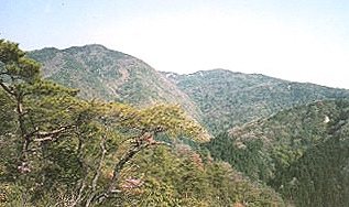 山頂手前から大峰山を望む。 右下の谷に武田尾がある。 1997.4.19. |