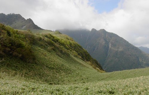 笹原を被った稜線が現れる。ぞくぞくする眺めである。(上の画像) しかも良い天気。