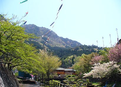 残念ですが懲りずにまたお願いします。谷は相変わらず鯉のぼりが泳ぎ、振り返ると新緑に包まれた尾根が