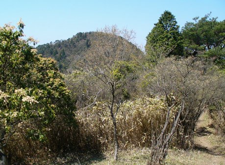 その後もいくつか谷を巻く。植林がアシビ混じりの雑木となり、笠の丸から来た道と合流する鞍部。
