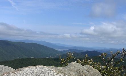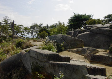 山頂へ戻るといつの間にか誰も居なくなっていた。蛙岩に登って景色を楽しむ。