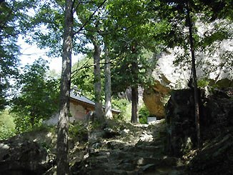 避けるのには丁度良い。岩陰から見上げる木々の葉はまだ青い。岩をぬって至る