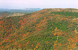 時期があったんだぁ。見直してしまった。その横に深山。きみどりのササ原に赤い