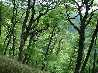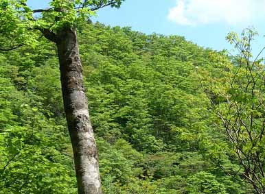 | 山道を見下ろすブナ | 木ノ実ヤ塚の木漏れ日 |